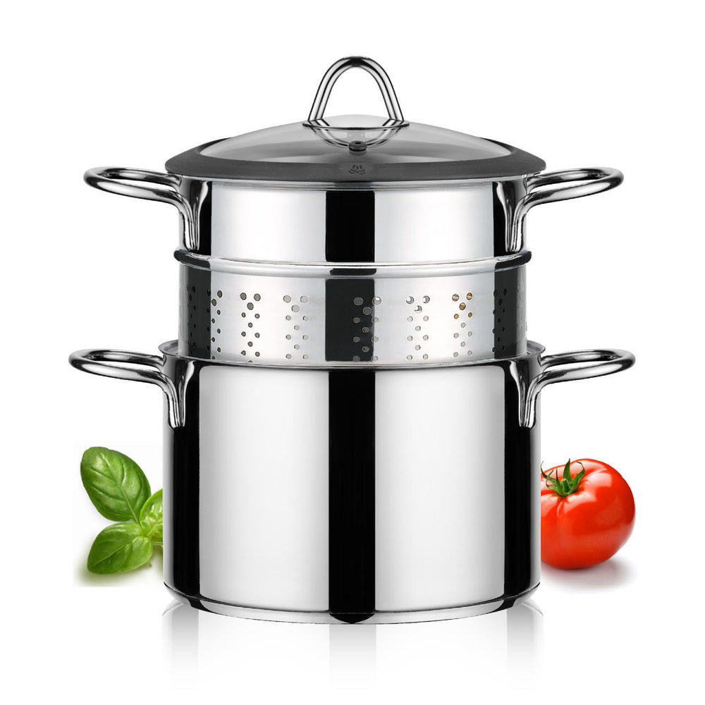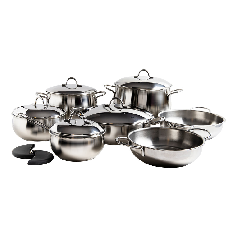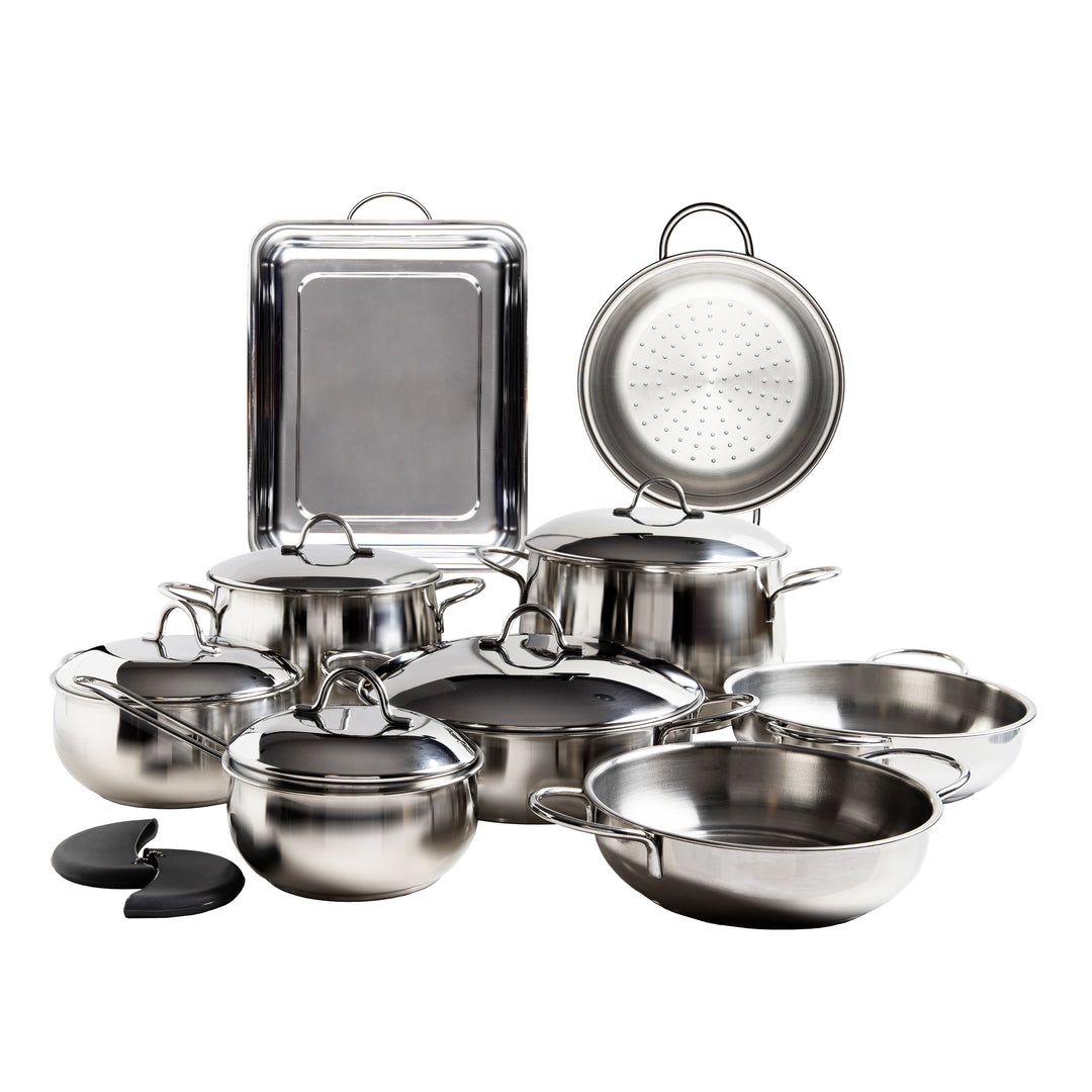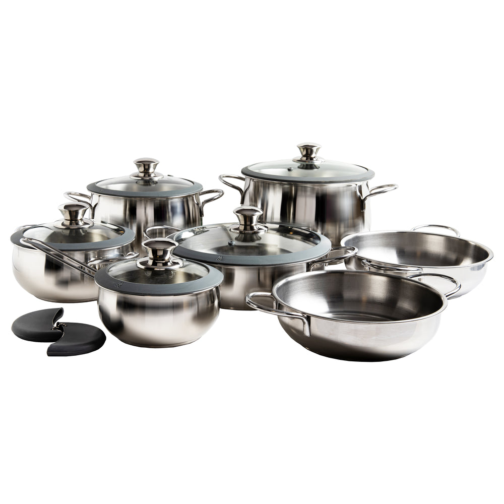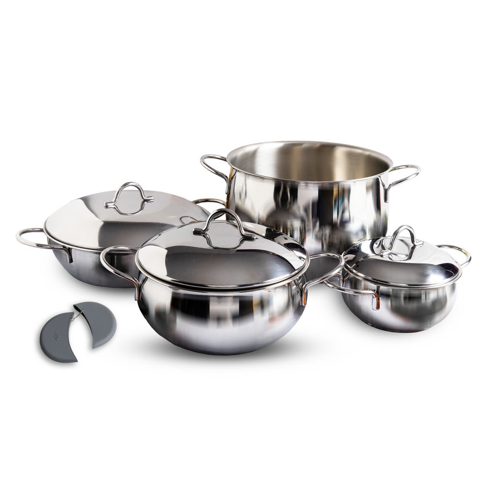 Fully designed and made in Italy, ARIMI stainless steel cookware set combines elegance, superior quality, and convenience across essential pieces needed in every kitchen. The thick triple-layer bottom ensures ultimate durability while optimizing heat distribution. The hand-crafted mirror polished exterior with satin finish interior looks great in every kitchen. Ready for all stovetops including induction.
