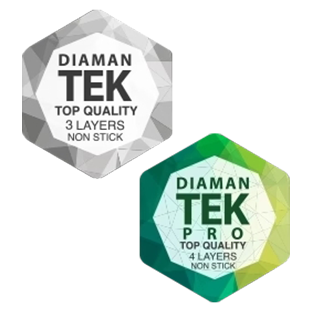 Our leading edge technology, this coating is a shining example of strength and resistance, thanks to its reinforced non-stick coating. The surface is so hard it is able to provide special resistance to scratches and abrasion. The evolution, Diamantek Pro has an added, ultra-resistant protective diamond barrier to make the surface even harder. It can withstand intensive, prolonged use and improve cooking performance.